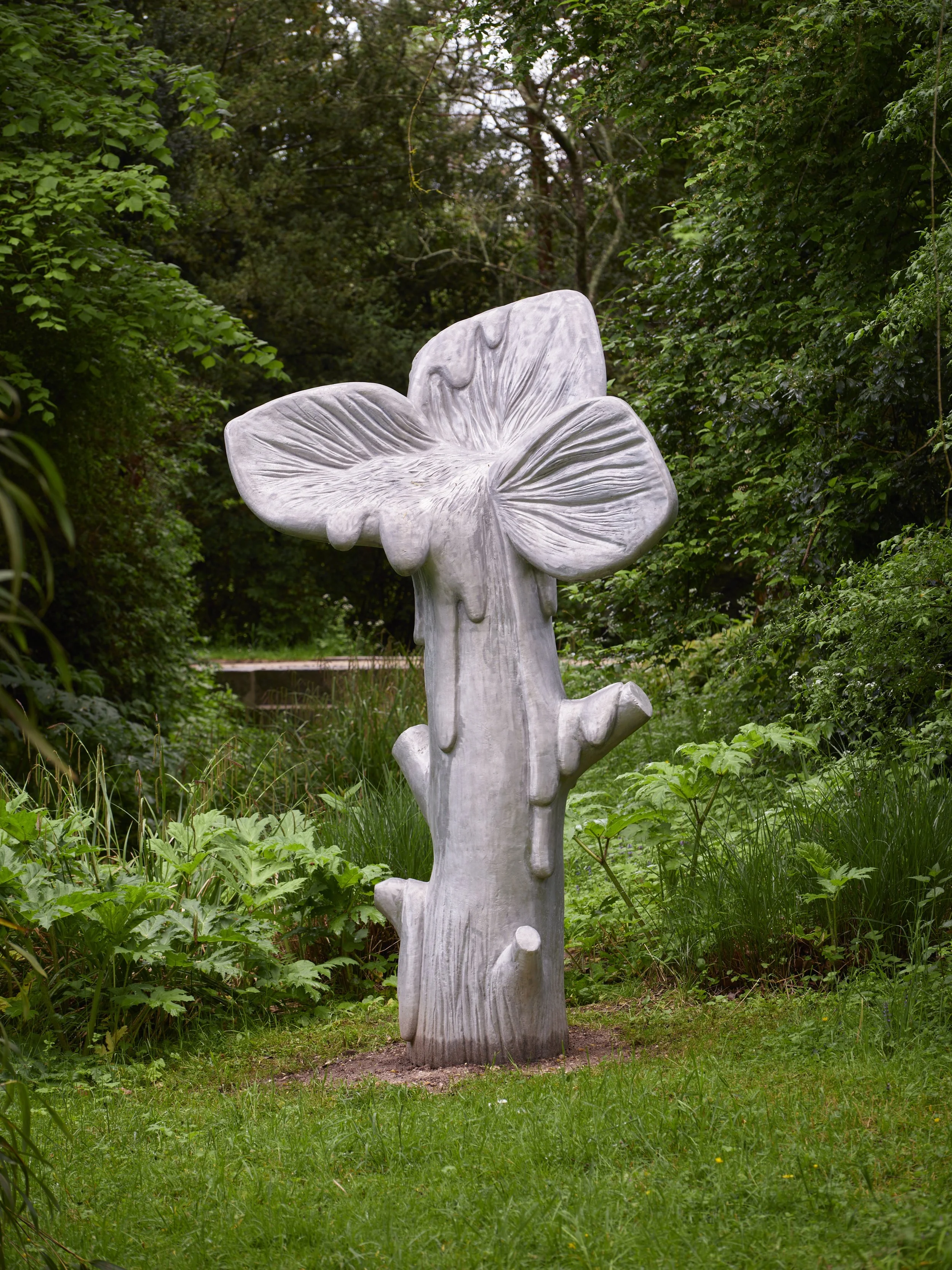 Conçue comme un arbre fantasmé, entre chimère végétale et artefact métallique, L’Immortelle prend la forme d’un organisme fictif : un végétal dont l’écorce lisse et brillante, faite d’aluminium, semble couler comme de la sève figée. À la fois fascinante et inquiétante, la sculpture incarne une forme de nature augmentée, hybride, presque monstrueuse.