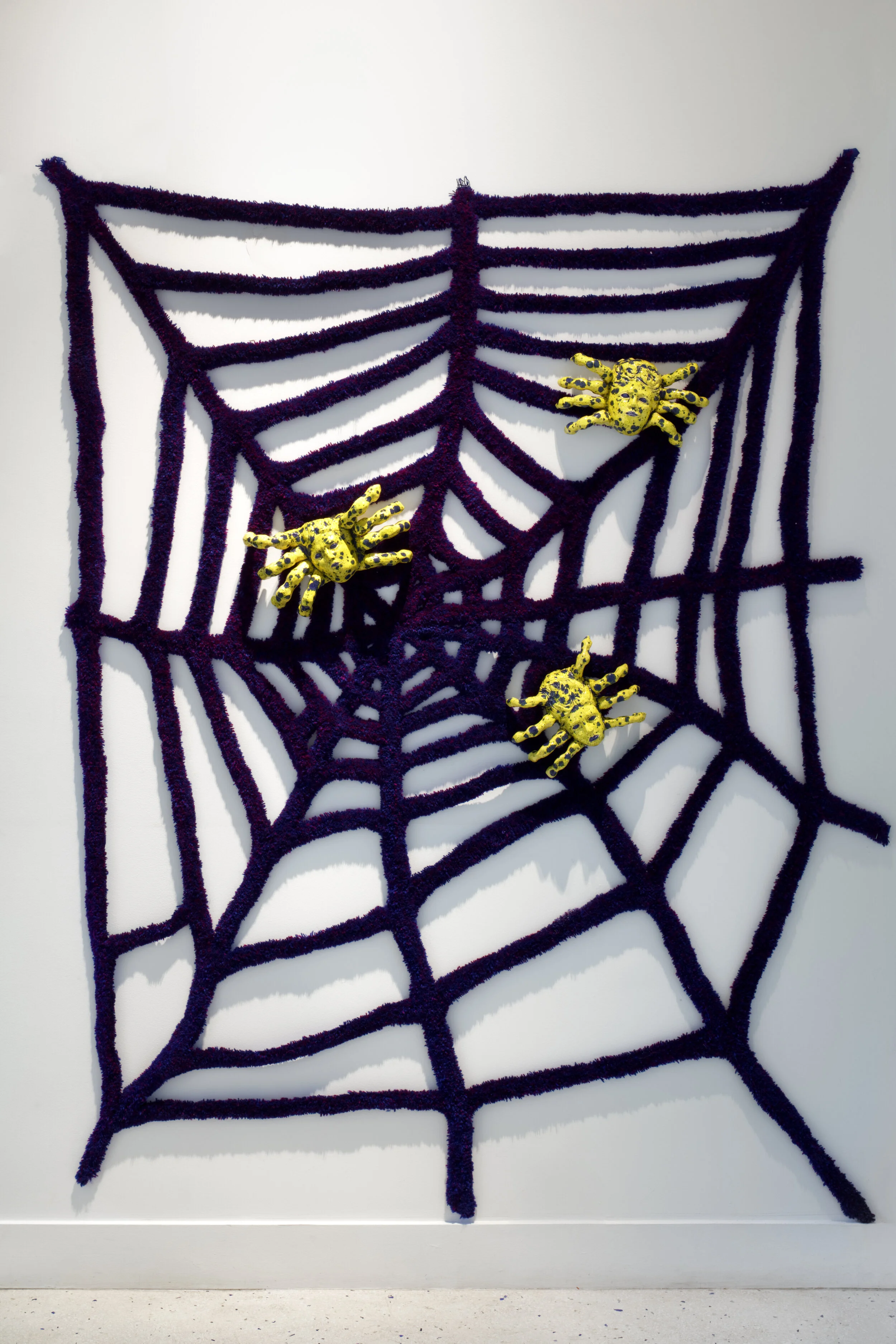 Julie Monot pourrait prendre la forme de Baba Yaga, cette sorcière célèbre que l’on retrouve dans les pays slaves : une dame-nature primitive à la fois gardienne du jour et de la nuit, de la vie et de la mort, l'essence et le mystère de la nature même. Les titres de ses oeuvres le reflètent : “Who is this”, “Eat me”, “Falling Cat”, “Snaky”, “Parano”, “Possibly Maybe”, “Vampyr”, “Night butterflies”, “Snaky”, “Les Trois Grâces”, “Tarentule”, “Spider”. Comme un jeu de masques, que l'on retrouve sur chacun des murs de la galerie, où il serait possible d’être quelqu’un d’autre, de se réinventer et de se modifier. L’exposition se déroule ainsi dans une zone intermédiaire de l'expérience, à laquelle la réalité intérieure et la vie extérieure contribuent ensemble. Un « espace potentiel » entre l'individu et l'environnement dans lequel l’artiste nous invite à entrer. Un espace où un jeu imaginatif, souvent issu de l'enfance, forme le pont entre deux mondes.