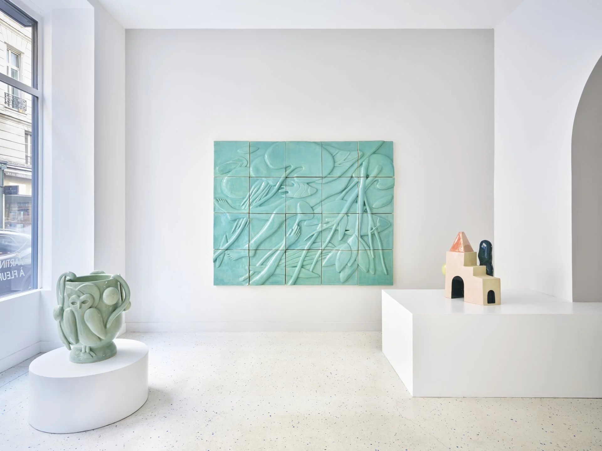Récents lauréats du prix luxembourgeois de la sculpture Schlassgoart 2025 pour leur sculpture « Inséparable », un pied traversé d'algues et d'herbes géantes, Martine Feipel & Jean Bechameil ont choisi pour la galerie Lefebvre et Fils la céramique comme seul médium. Ils ont sculpté, moulé, bas-reliefs et pièces de forme dans une même énergie, maniant les émaux avec délicatesse.